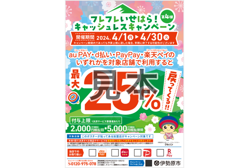 ※このポスターの掲出店が対象店 | 2024.3.31(日)〜2024.5.6(月) | ・1回あたりの付与上限:1,000ポイン ・期間あたりの付与上限5,000ポイント |