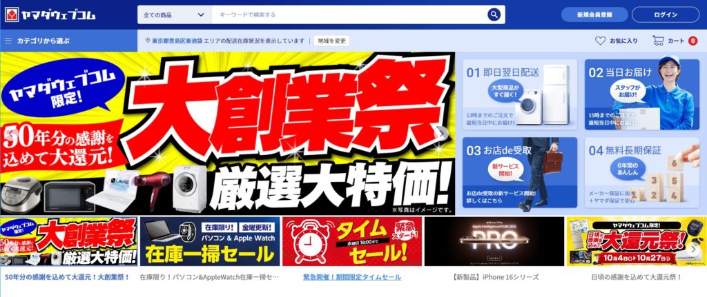 ヤマダ電機の公式通販サイトのヤマダウェブコムは、ヤマダデンキ店舗と保証は別となります。